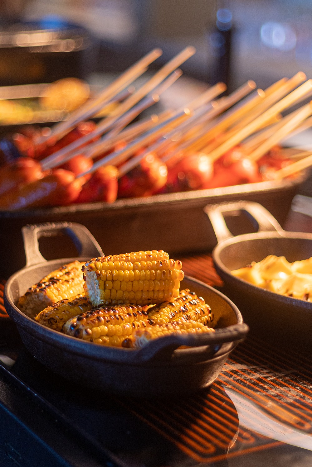 Há também opções veganas, como espetinho de banana da terra, churrasco de legumes, milho verde com azeite de ervas e caldinho de jerimum. Saladas, queijos, frios, itens de café da manhã, como waffles e ovos beneditinos e pratos quentes também estão incluídos no buffet que será servido das 13h às 16h.