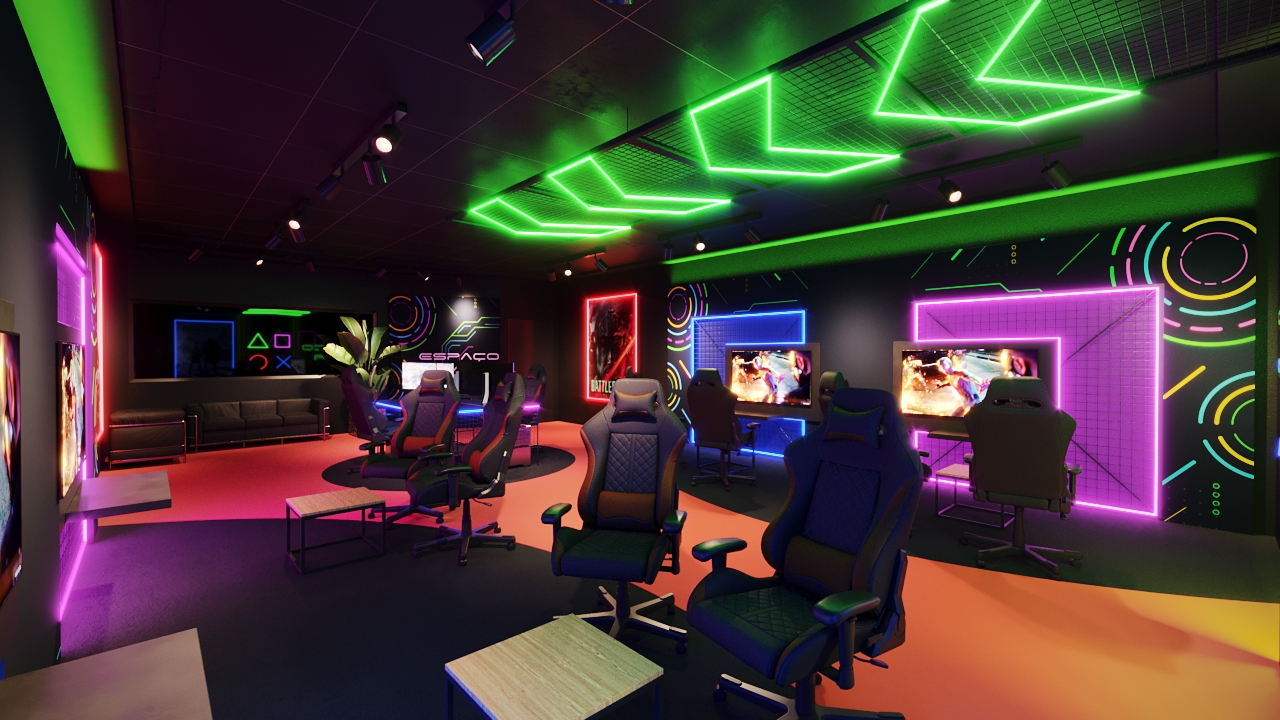 Para as crianças, o destaque vai para a sala Gamer, espaço montado em parceria com a R1 para o período de férias. A sala conta com uma estação de jogos de console, outra com videogames playstations 5, além de duas áreas destinadas a jogos de computador. Todas as estações contam com cadeiras gamers e TVs, para deixar o ambiente ainda mais confortável e tecnológico.