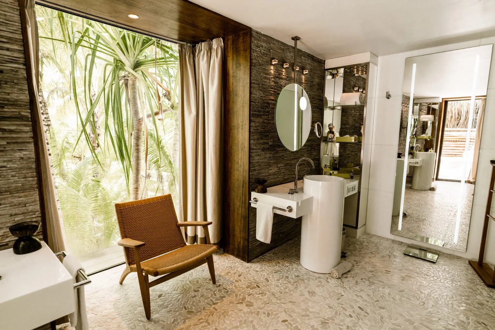 Cada uma das 35 acomodações do resort é isolada das demais e oferece diferentes ambientes para relaxar, ler ou apenas contemplar a natureza. Em 96 m2 os casais, famílias com crianças ou grupos pequenos podem desfrutar de uma suíte com cama King e dois confortáveis sofás camas. Além de banheira privativa outdoor e mais sala de estar, com minibar, geladeira, TV ampla e espaço de trabalho. As estruturas seguem projetos modernos para evitar desperdício de recursos e primar pelo isolamento acústico e ventilação nos espaços. O resort oferece ainda o Teremoana Residence, uma casa de 279m2 aninhada entre a vegetação para hospedar 6 adultos com crianças ou famílias grandes com equipe de apoio. Uma estrutura completa com privacidade, discrição e um mordomo exclusivo.