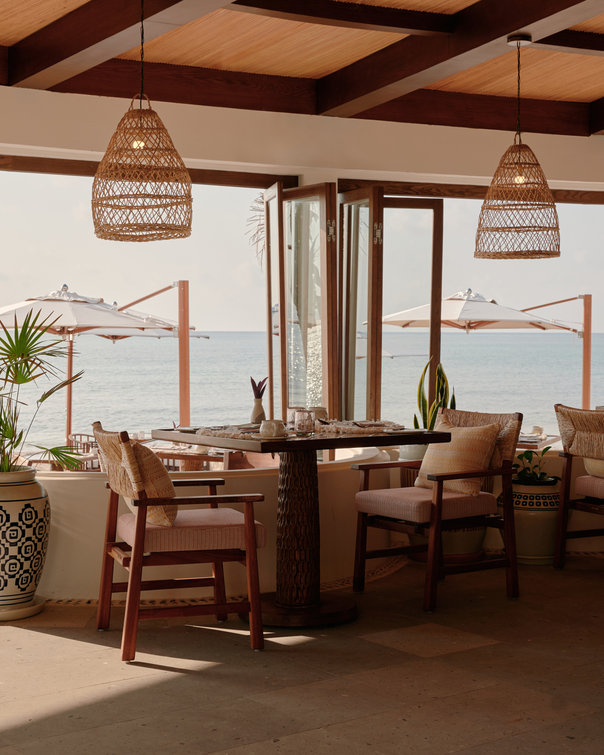 Todos os 72 apartamentos, suítes e villas estão espalhados pela praia particular do Maroma; muitos têm vistas deslumbrantes para o oceano. As dez novas suítes de um e dois quartos à beira-mar oferecem vistas incríveis e acesso direto à praia; algumas contam com piscinas e jardins privativos. Aqueles que buscam mais privacidade podem optar pelas villas de dois quartos com piscina à beira-mar ou pela Villa Maroma de 366 metros quadrados, com quatro quartos, cozinha completa, bar, amplo terraço externo, espreguiçadeiras e piscina privativa. O Maroma fez uma parceria com a marca socialmente consciente Collectiva Concepción para a confecção, no tradicional tecido “Manta”, dos uniformes da equipe e dos kaftans para hóspedes no quarto, bordados à mão por artesãs de Chiapas. A marca de fragrâncias Xinú, com sede na Cidade do México, criou um perfume personalizado e amenities de banho inspirados na árvore regional Amate, no aroma de argila, incenso místico e limão.