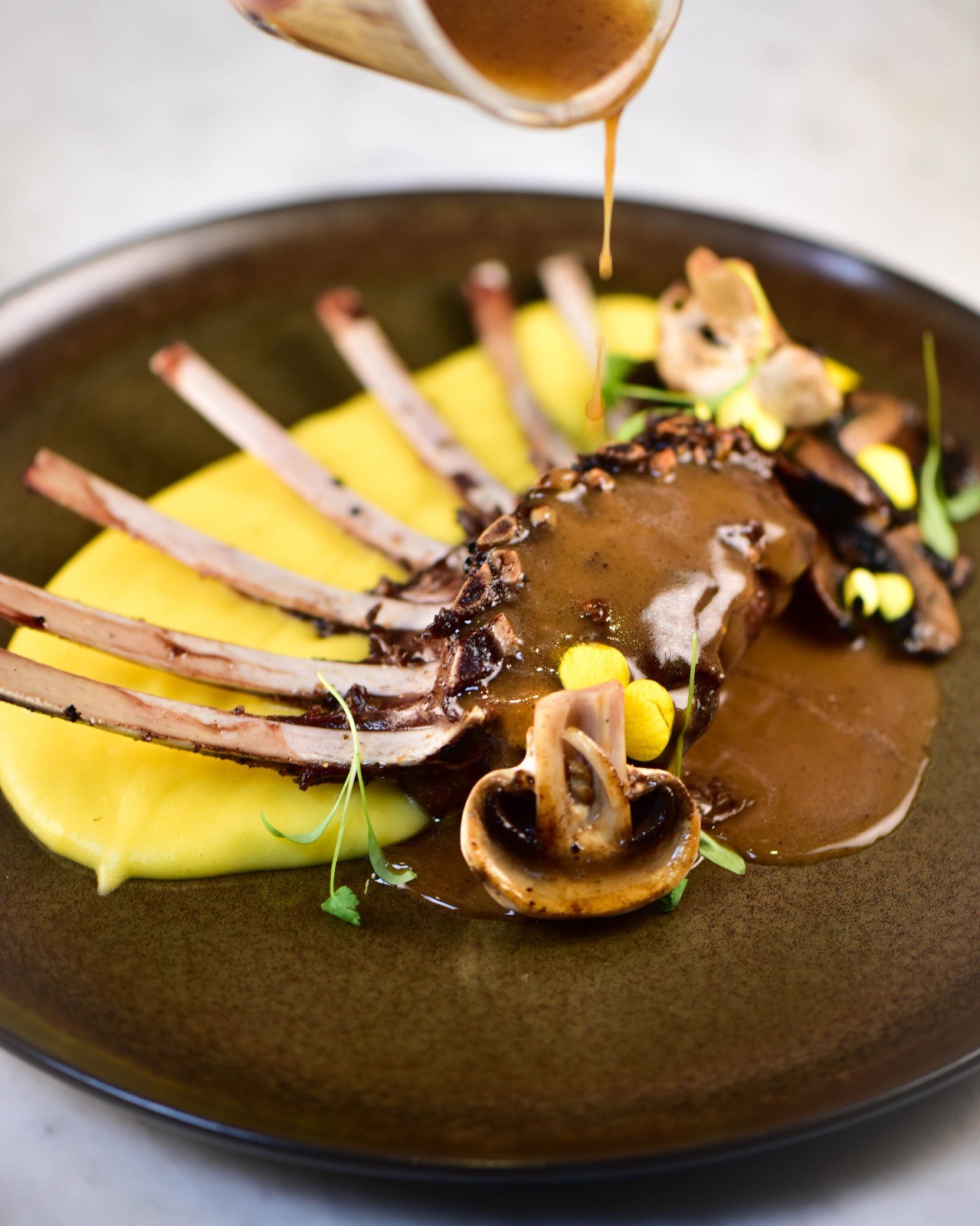 Entre as opções de entradas, atum selado com gergelim, purê wasabi e pérolas de shoyu (R$ 52), ceviche de peixe do dia com torradas da casa (R$ 48) e camarão ao curry (R$ 68). Nos principais, tornedor de filé mignon com fettuccine ao funghi (R$ 108), salmão com risoto de limão siciliano e fonduta de parmesão (R$ 109) e carré de cordeiro com batata baroa, cogumelo paris e molho roti (R$ 105).