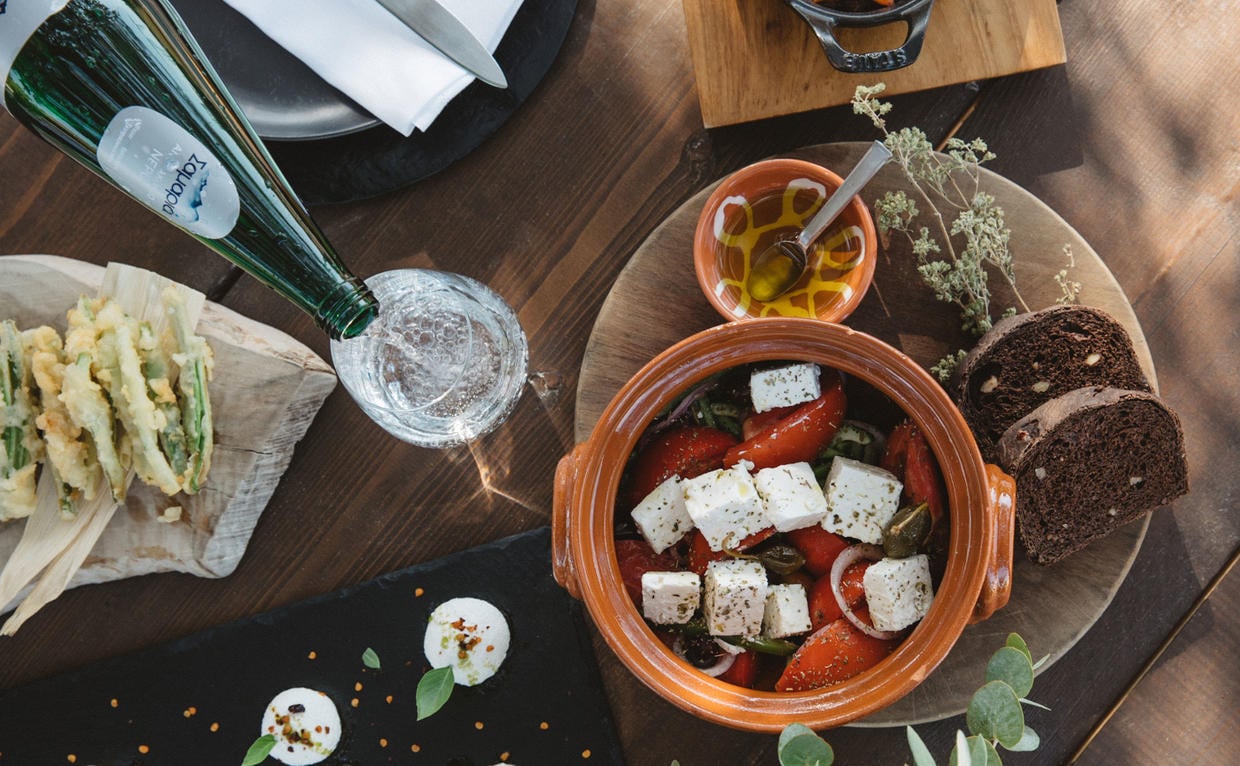 Os sabores contemporâneos da cozinha grega e mediterrânea são realçados através dos ingredientes locais, servidos no restaurante principal com vistas para o mar, bem como no terraço da piscina e no descontraído Beach Club. O clima romântico é elevado pelo menu de degustação exclusivo para casais, servido sob as estrelas no anfiteatro do Amanzoe. Com a combinação perfeita entre elegância discreta, hospitalidade calorosa e beleza natural, o Amanzoe transcende as expectativas de um hotel de luxo, proporcionando um ambiente sereno e exclusivo para seus hóspedes.