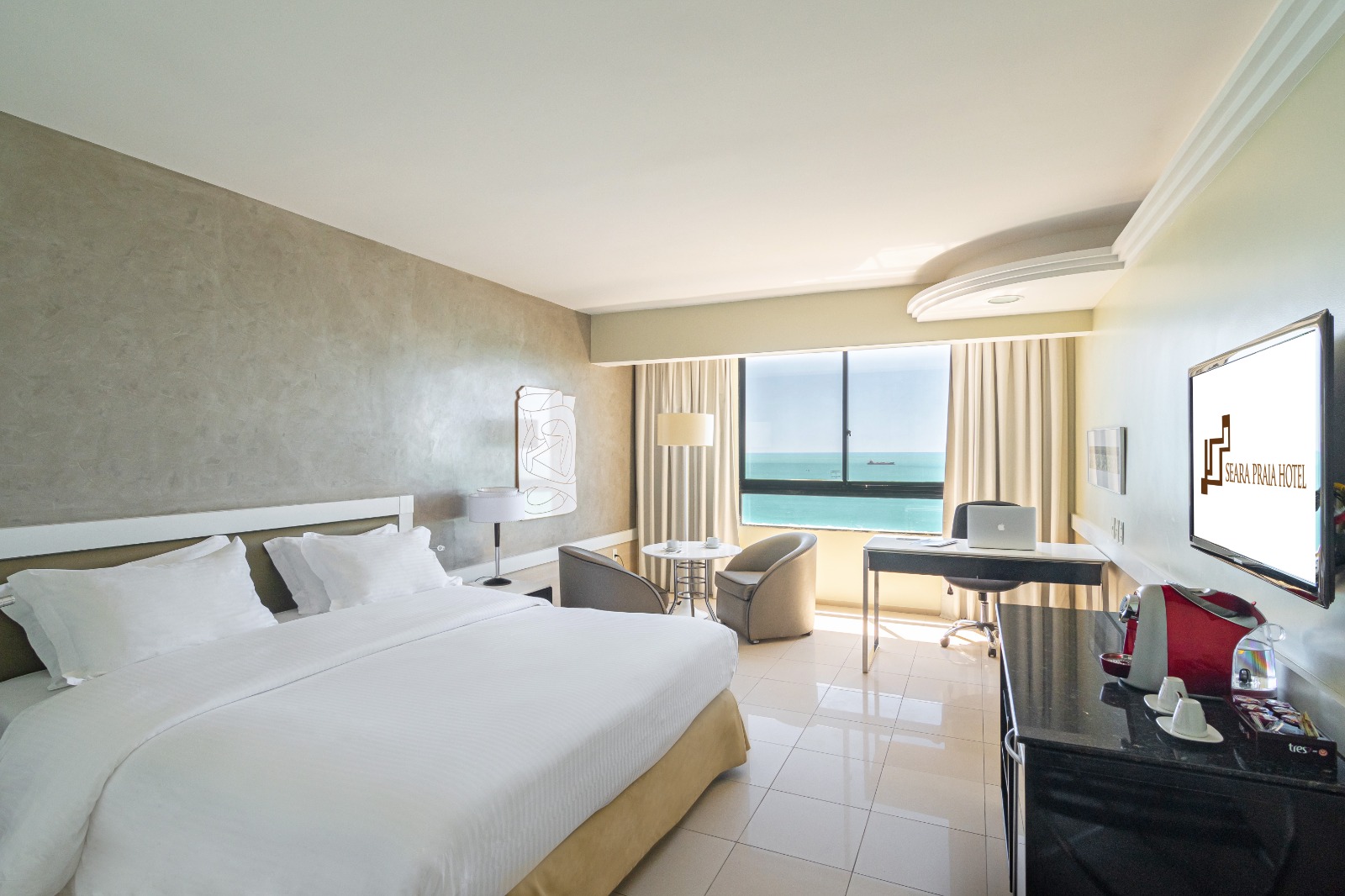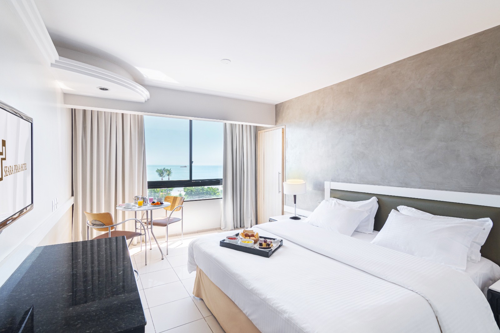 Em setembro, o Seara Praia Hotel oferece 20% de desconto nas tarifas das melhores suítes do empreendimento: Luxo Executivo, Suíte Jr, Business e Acqua. Todas contam com uma vista privilegiada do mar e da orla da capital, além de infraestrutura de hospedagem para mais de uma pessoa. Para ter esse benefício, interessados devem acessar o site do Seara Praia Hotel e em seguida clicar no link que aparece na capa do portal.