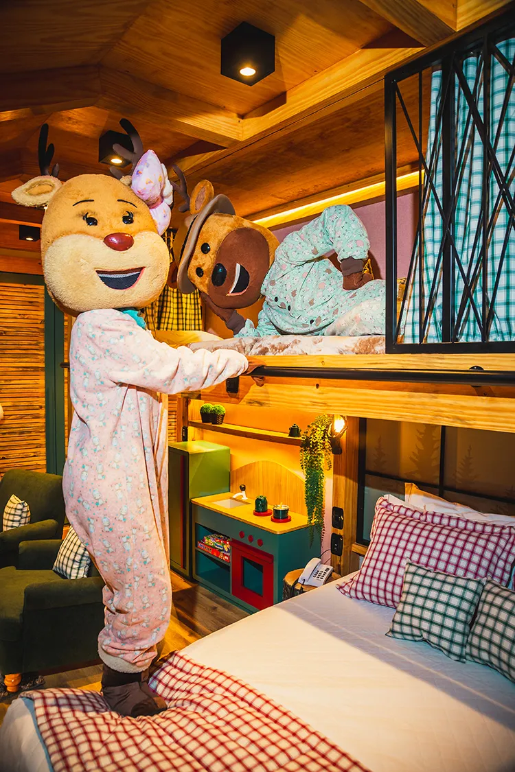 Ao fazer o check-in e chegar ao quarto, as crianças receberão um telefonema especial das queridas reninhas desejando-lhes uma excelente estadia. No dia seguinte, pela manhã, Alceu e Lola surpreenderão os pequenos hóspedes com uma visita inesperada. Além disso, as acomodações oferecem diversos outros mimos surpresas, como roupões fofos para os hóspedes usarem durante a estadia e chinelinhos que podem ser levados para casa. A gerente de Marketing, Maria Clara Tissot, observou com encanto o brilho nos olhos das crianças que se hospedam nessas acomodações.