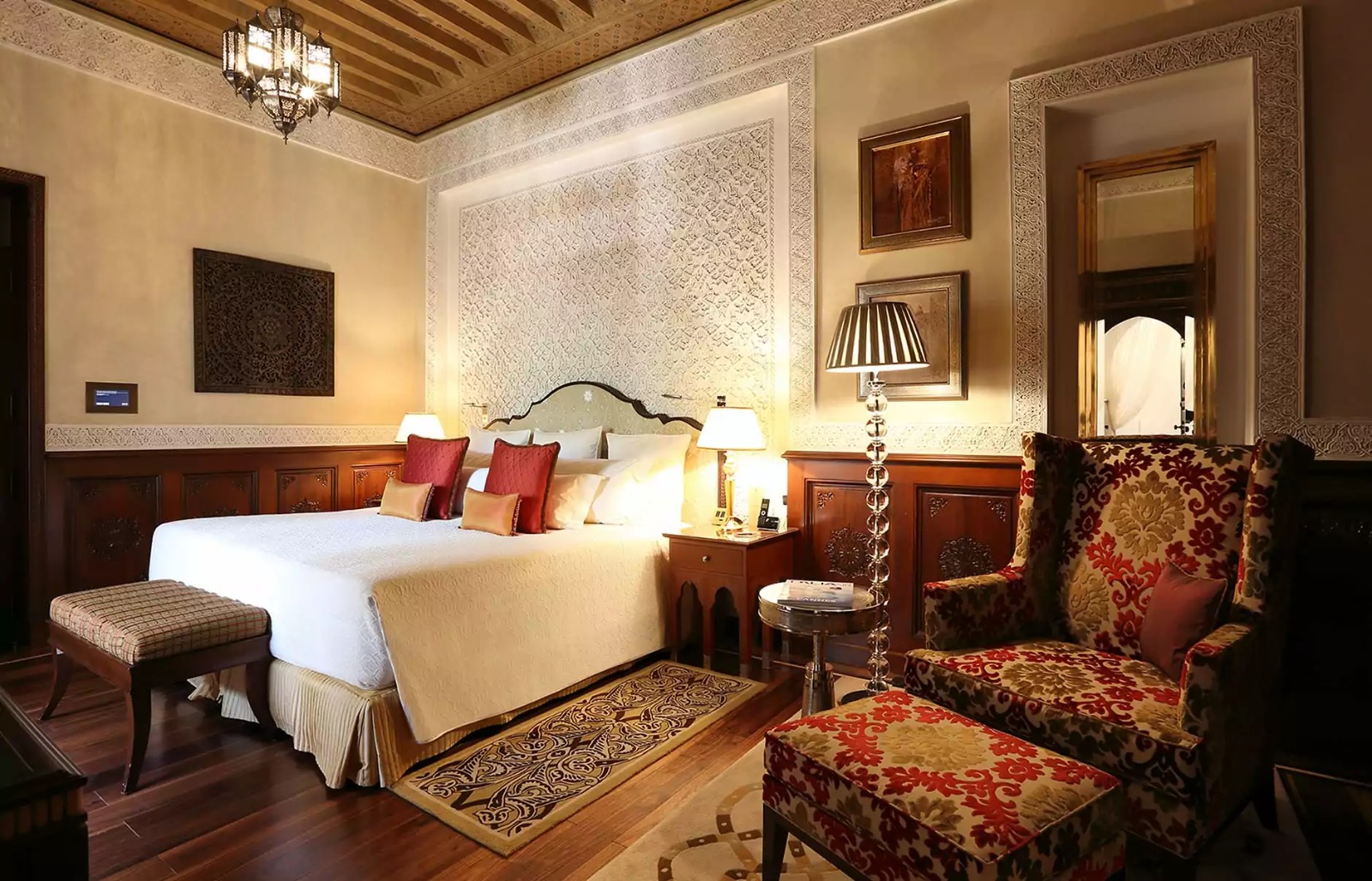 Ao adentrar o Royal Mansour, os visitantes são recepcionados por uma profusão de detalhes e um estilo arquitetônico que evoca os palácios marroquinos tradicionais. O hotel oferece acomodações em riads privados, cada um meticulosamente concebido, com uma atenção minuciosa aos detalhes. Cada riad é um refúgio de luxo e privacidade, com piscinas particulares, terraços panorâmicos e espaços de estar requintados.