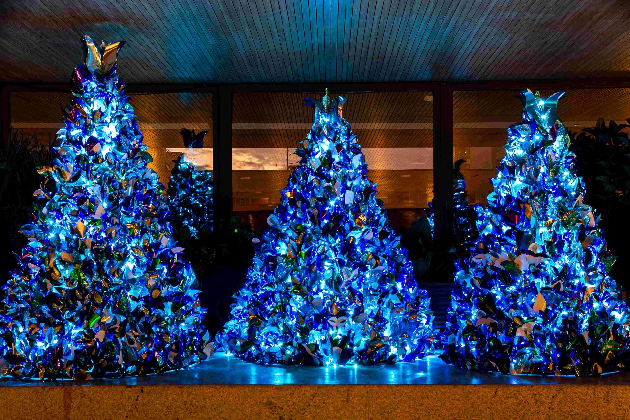 O Fairmont Rio acaba de inaugurar a decoração de Natal com uma composição de árvores assinada pela artista plástica carioca Andréa Lins. Localizada no 6º andar do hotel, a obra ganha protagonismo pelo ineditismo e beleza, inspirada na natureza e indo ao encontro da magia da época festiva. “Andréa Lins é uma artista contemporânea que desenvolveu sua pintura com colagens de tela sobre tela. Agora, pela primeira vez, Lins faz as flores de seus quadros saltarem para uma nova existência, fora deles. Passando do bidimensional para o espaço, elas foram transportadas para árvores natalinas, deslocando-as com ousadia e coragem” conta a curadora do projeto, Christiane Laclau.