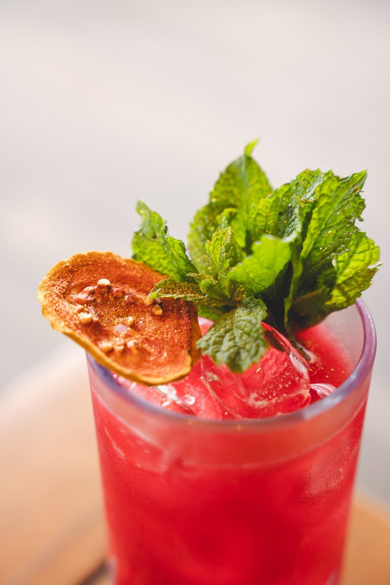 Ingredientes: Gin Yvy, suco de goiaba, xarope de hibisco com catuaba, suco de limão e hortelã.