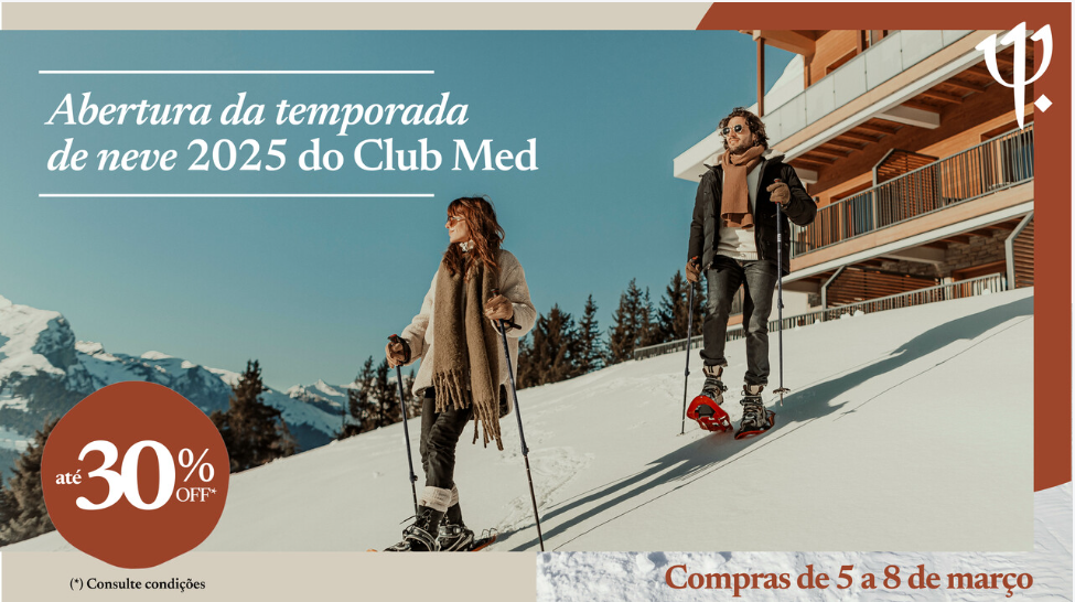 O ano começou e, com ele, o planejamento e a organização para preparar as próximas férias em família na neve. Pensando nisso, o Club Med, maior rede de resorts all inclusive do mundo, inicia sua principal campanha de vendas de pacotes para a neve entre os dias 5 e 8 de março. Neste período, será possível adquirir diárias para todas as unidades de montanha na Europa, Canadá e Ásia com até 30% de desconto, diretamente no site, para viajar entre dezembro de 2024 e abril de 2025.