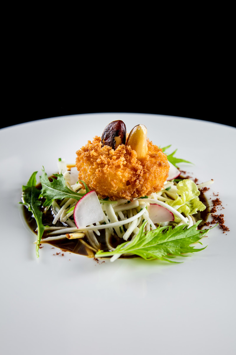 Zé Cabra (queijo de cabra crottin | palmito pupunha | molho rapadura) – Chef Pablo Ferreyra