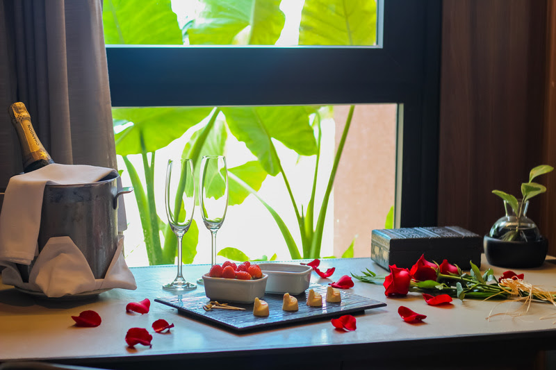 Já para aproveitar a noite de núpcias, o BA’RA Hotel preparou um pacote recheado. O casal pode optar por uma diária na suíte Prestige ou Garden com early check-in às 10 da manhã. As suítes são decoradas com um cartão de boas-vindas, porta-retrato personalizado, decoração com buquê de rosas vermelhas, um espumante Veuve Clicquot, chocolates finos do BA’RA, uma tábua de frios e queijos com geléias e frutas regionais e um café da manhã servido no próprio apartamento. E não para por aí: o casal ainda pode realizar uma massagem terapêutica no B SPA By UMI e garantir mais momentos de descanso com o late check-out às 15:00.