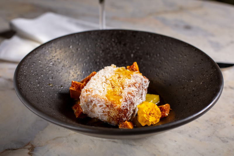 Para encerrar o menu com chave de ouro, o Bolo de Coco Gelado, criado exclusivamente para o restaurante pela chef Carole Crema, é uma opção refrescante e deliciosa, preparado com frutas frescas amarelas, honeycomb e redução de especiarias (R$ 38). O inusitado Tempura de Ferrero Rocher combina sorvete de amendoim empanado com hortelã, pó de ouro e chocolate 80% (R$ 60).
