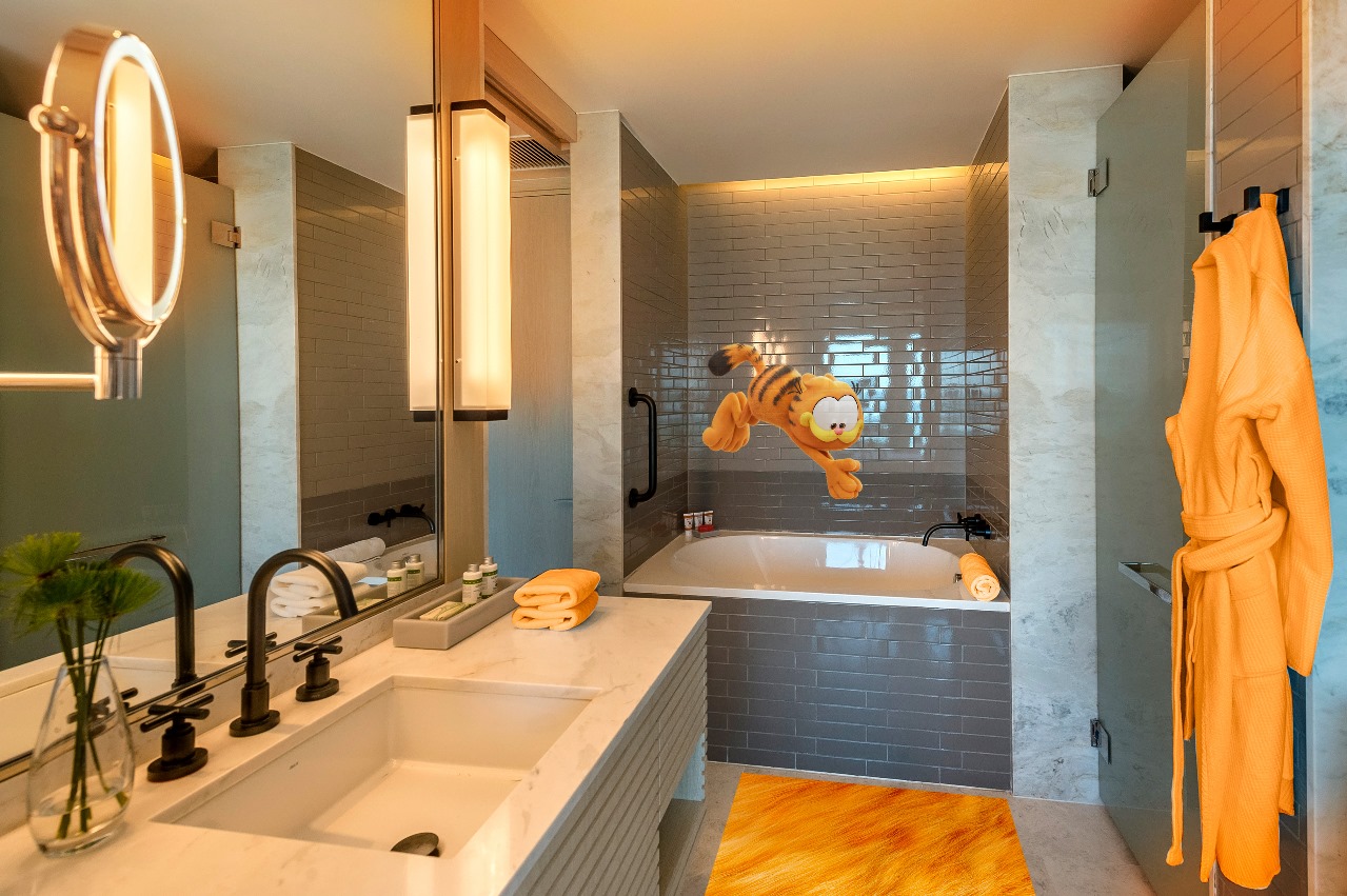 Inspirado no filme “Garfield – Fora de Casa”, que estreia nos cinemas em 1º de maio, o Grand Hyatt Rio de Janeiro preparou uma novidade que vai encantar crianças e adultos de todas as idades. De 21 de abril a 21 de maio, os hóspedes poderão viver uma experiência memorável em um quarto com decoração temática do gato mais amado do mundo.