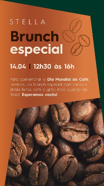 Em celebração ao Dia Mundial do Café, que ocorre em 14 de abril, o Canopy by Hilton São Paulo Jardins preparou um brunch especial para todos os hóspedes e visitantes que não resistem ao aroma do café, acompanhado por um pão quentinho, bolo ou até mesmo após o almoço. O evento irá ocorrer no Stella Restaurante, no domingo, dia 14 de abril, das 12h30h às 16h, por R$ 260 por pessoa com bebidas alcoólicas, e R$200 sem que contempla água, suco e refrigerantes.