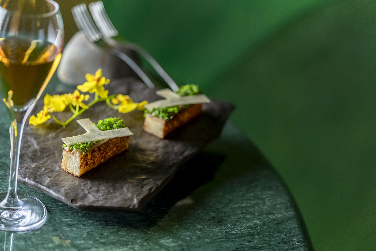 Um ovo mollet com espuma de tucupi e mandioca também surge entre as criações, em homenagem à cultura alimentar indígena, que tem no plantio do tubérculo uma de suas bases. “Aos poucos, vamos explorar ingredientes e sabores que fazem da região um terroir único, bem como levar para lá peculiaridades culinárias de diferentes partes do Brasil com um olhar especial, de forma lúdica e criativa, apoiado no trabalho de pesquisa e excelência que já fazemos”, afirma o chef.