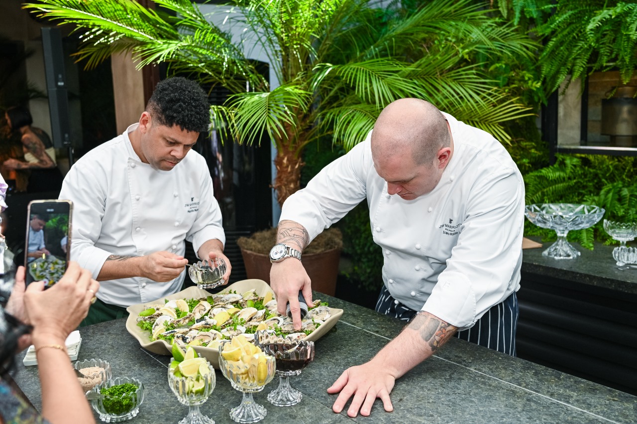 Na ocasião, o destaque ficou para as experiências exclusivas apresentadas aos convidados, que traduzem fielmente o conceito das marcas do portfólio. A começar por uma mesa especial de ostras, assinada pelo chef Icaro Rizzo, à frente do restaurante Neto, localizado no JW Marriott Hotel São Paulo, além de uma carta de coquetéis personalizada apresentada pela marca W Hotels, com curadoria de Ronald Schneider, gerente de A&B do W São Paulo, que será inaugurado em breve. No menu, uma verdadeira jornada gastronômica em cinco tempos criada pela 7 Gastronomia, com curadoria do renomado chef Alex Atala. O almoço também contou com uma demonstração da técnica de sabrage, apresentada pelo sommelier Murilo Cagliari.