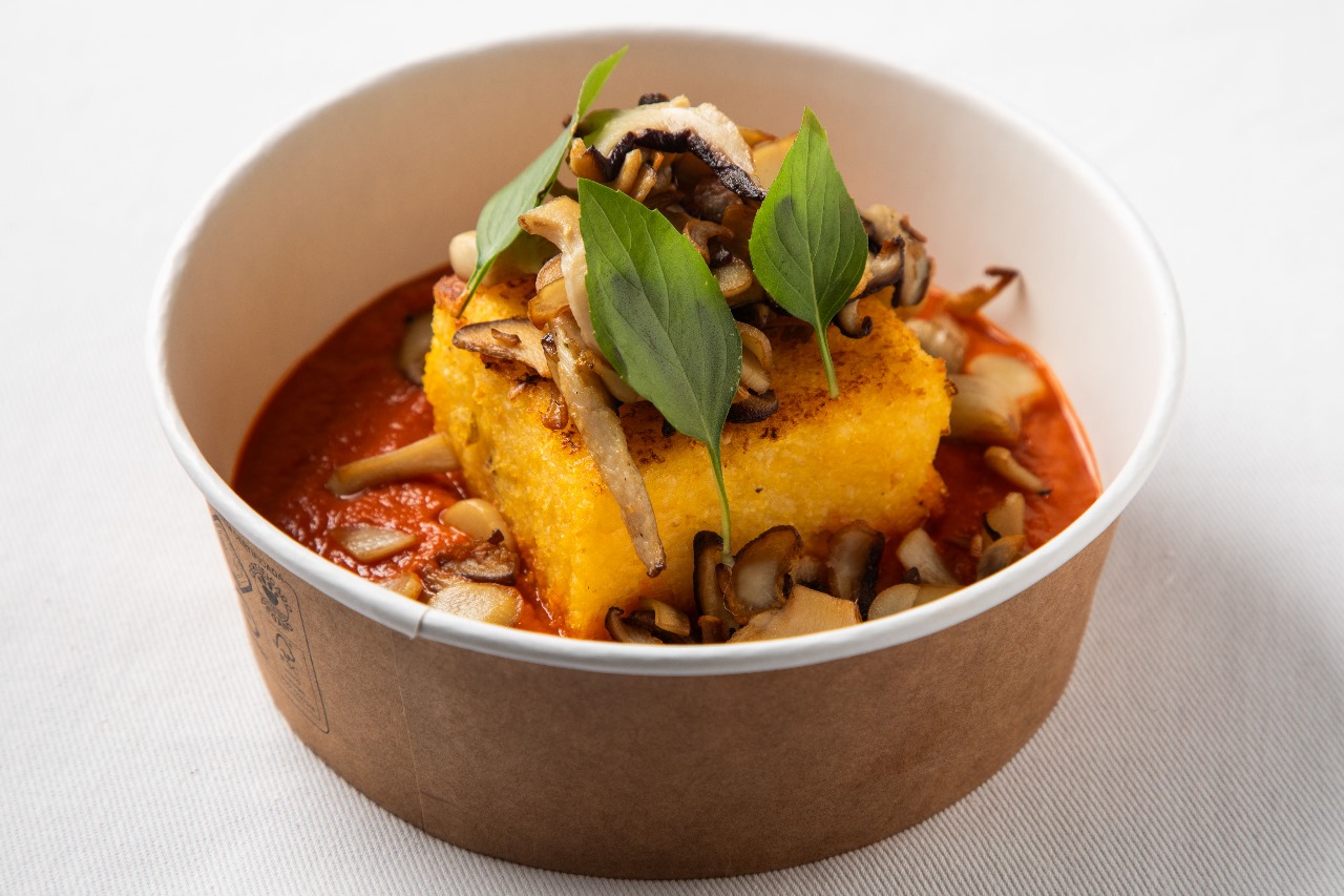 Polenta Assada, Salsa de Tomate Italiano Assado e Cogumelos Salteados – R$45