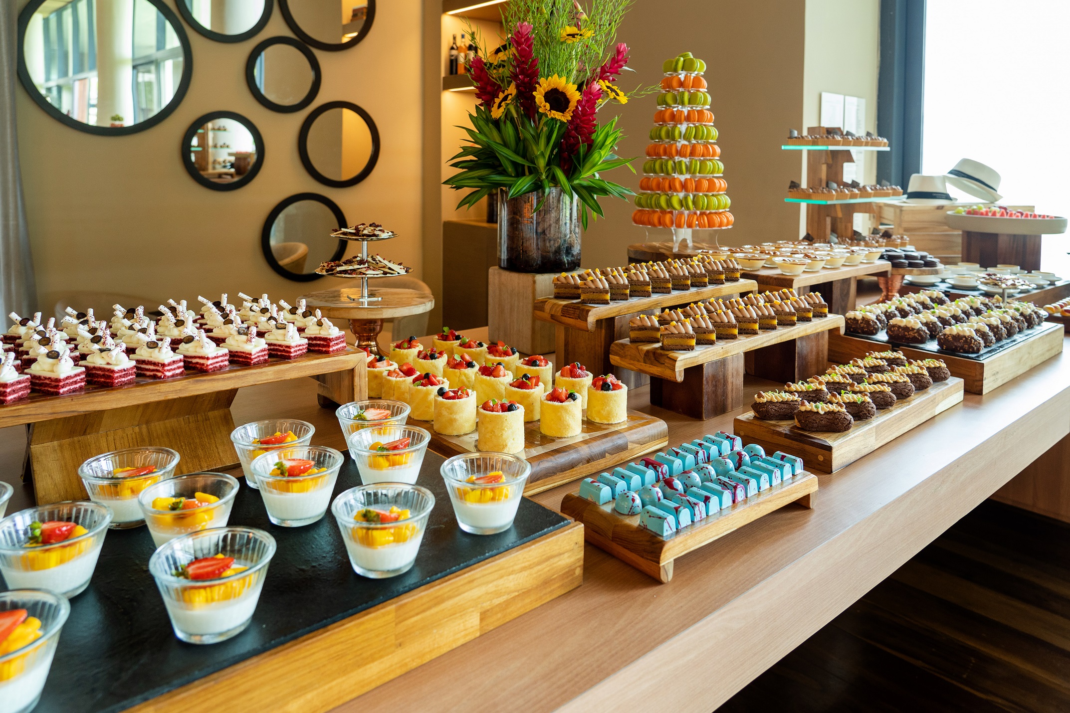 O chef de banquetes Carlos Volker assina o menu que traz buffet completo, incluindo estações de churrasco com cortes especiais, saladas, frios e queijos, além de itens de café da manhã e uma deliciosa mesa de sobremesas criadas pela chef pâtissier Paula Peixoto.