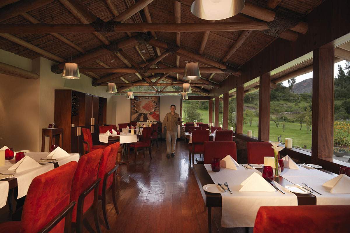 O restaurante El Huerto, um dos destaques do hotel, serve uma culinária peruana centrada em ingredientes orgânicos e superalimentos andinos. No cardápio, aparecem truta fresca de Urubamba, grãos típicos como quinua e kiwicha, ervas da horta do próprio hotel e pratos preparados no tradicional estilo pachamanca — técnica ancestral de cozimento sob a terra.
