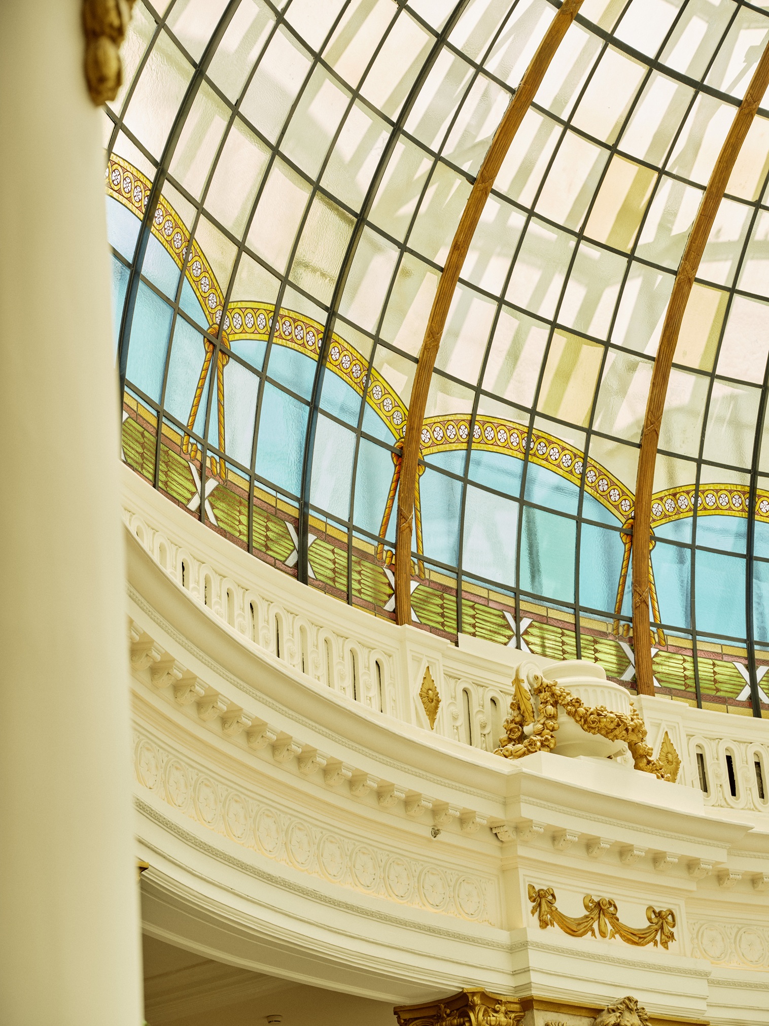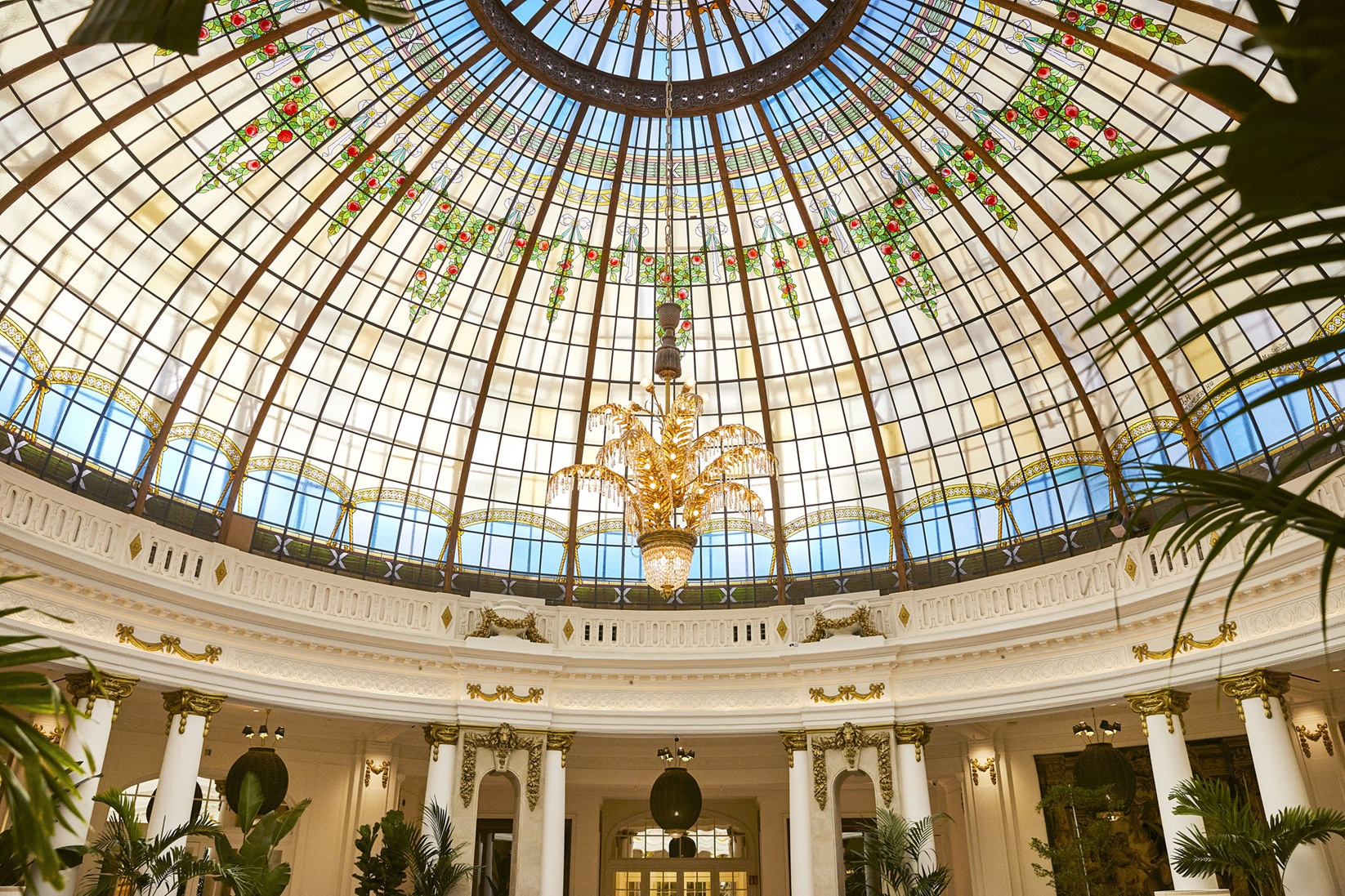 Sob a histórica cúpula de cristal — restaurada minuciosamente, vidro a vidro — e iluminada por uma monumental luminária Art Déco em forma de palmeira, renasce La Cúpula, um dos espaços mais emblemáticos do hotel. A grande barra central, agora protagonista absoluta, redefine o ambiente: um cenário cosmopolita onde madrilenhos, visitantes e hóspedes se misturam como nos grandes salões europeus do início do século passado.