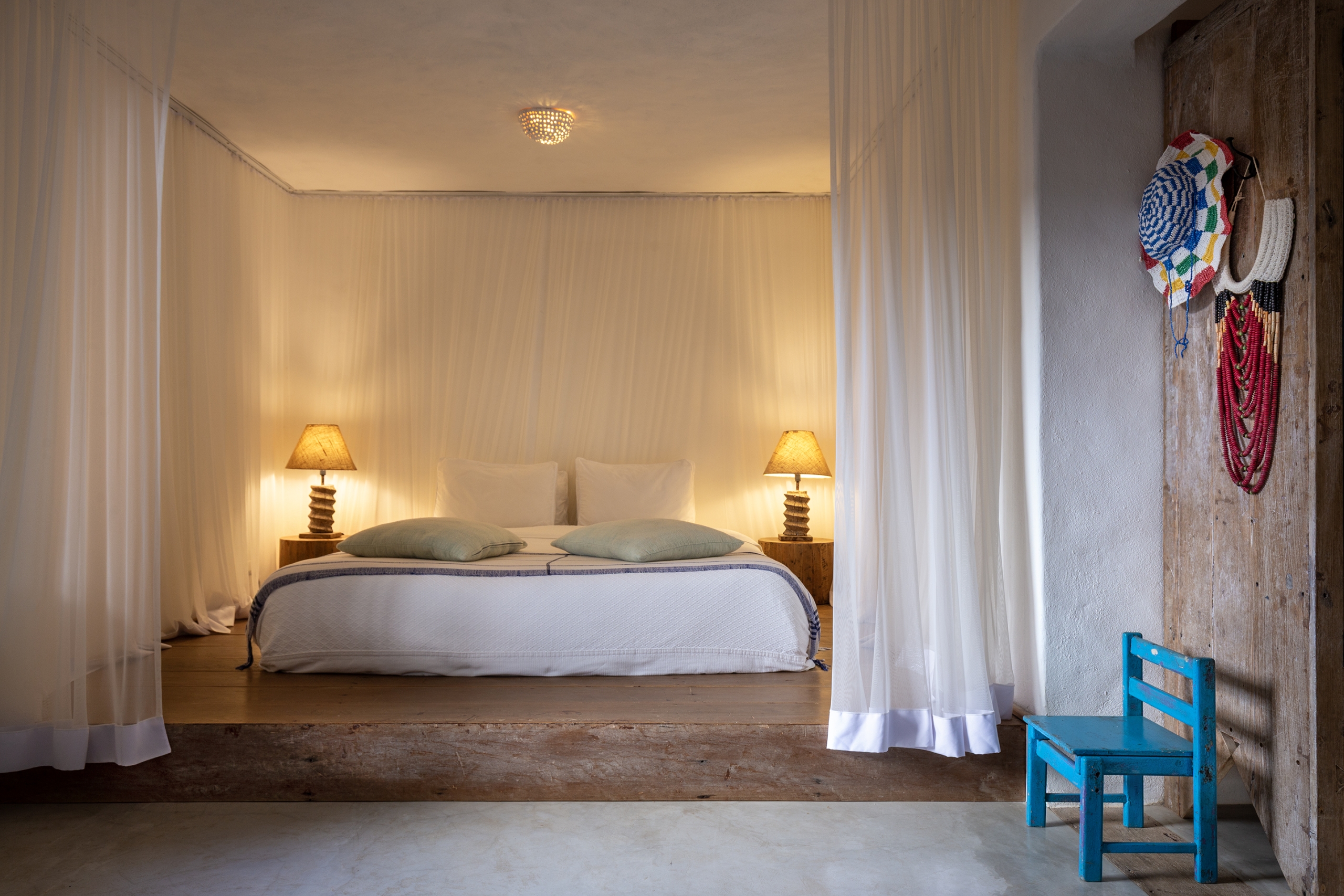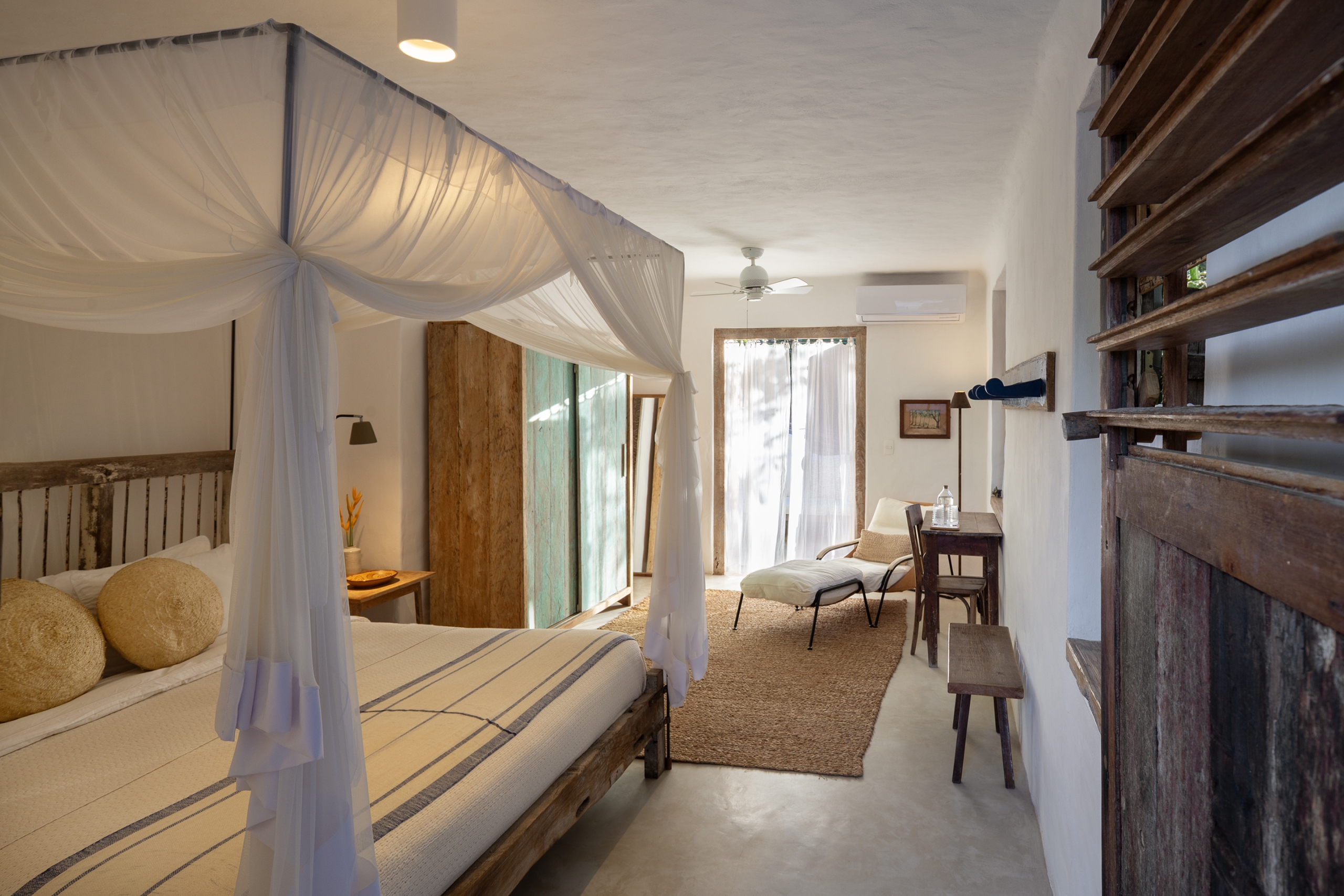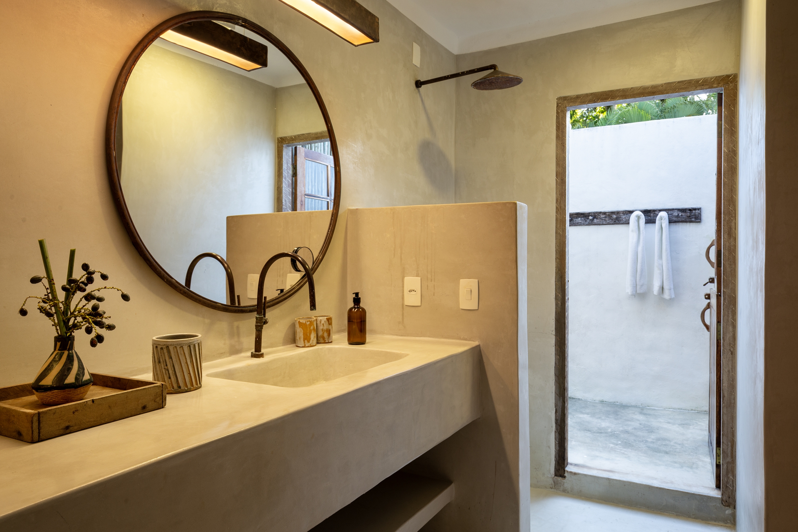 Enquanto isso, a Casa Império dispõe de quatro suítes, sendo duas localizadas no térreo, de frente para o jardim, o que proporciona uma atmosfera de tranquilidade e bem-estar. As suítes do andar superior apresentam estrutura diferenciada: uma delas conta com chuveiro ao ar livre – permitindo um momento de relaxamento sob o céu de Trancoso – e varanda com vista para a charmosa Rua do Beco. Complementando o portfólio, a Casa Sebastiana, uma antiga residência de pescadores, oferece três suítes, uma delas com vista privilegiada para o Quadrado. Todas as acomodações foram projetadas para receber até duas pessoas.