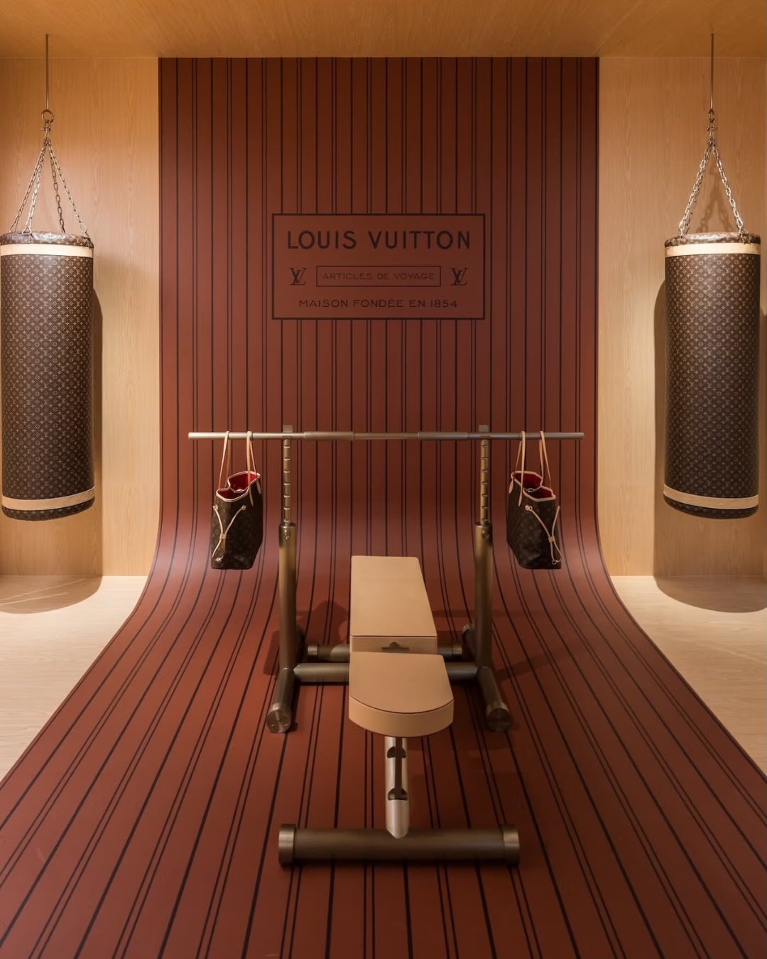O conceito nasce como uma celebração dos 130 anos do Monogram, padrão criado em 1896 e transformado em um dos códigos visuais mais reconhecíveis do setor. Para contar essa história, a Louis Vuitton recria, dentro do espaço, ambientes inspirados nas áreas comuns de um hotel… há um lobby que remete à icônica bolsa Keepall, um bar de champanhe associado ao modelo Noé e um terraço que evoca o espírito da Alma. Cada sala funciona como um capítulo narrativo, conectando produto, herança e imaginário de viagem.