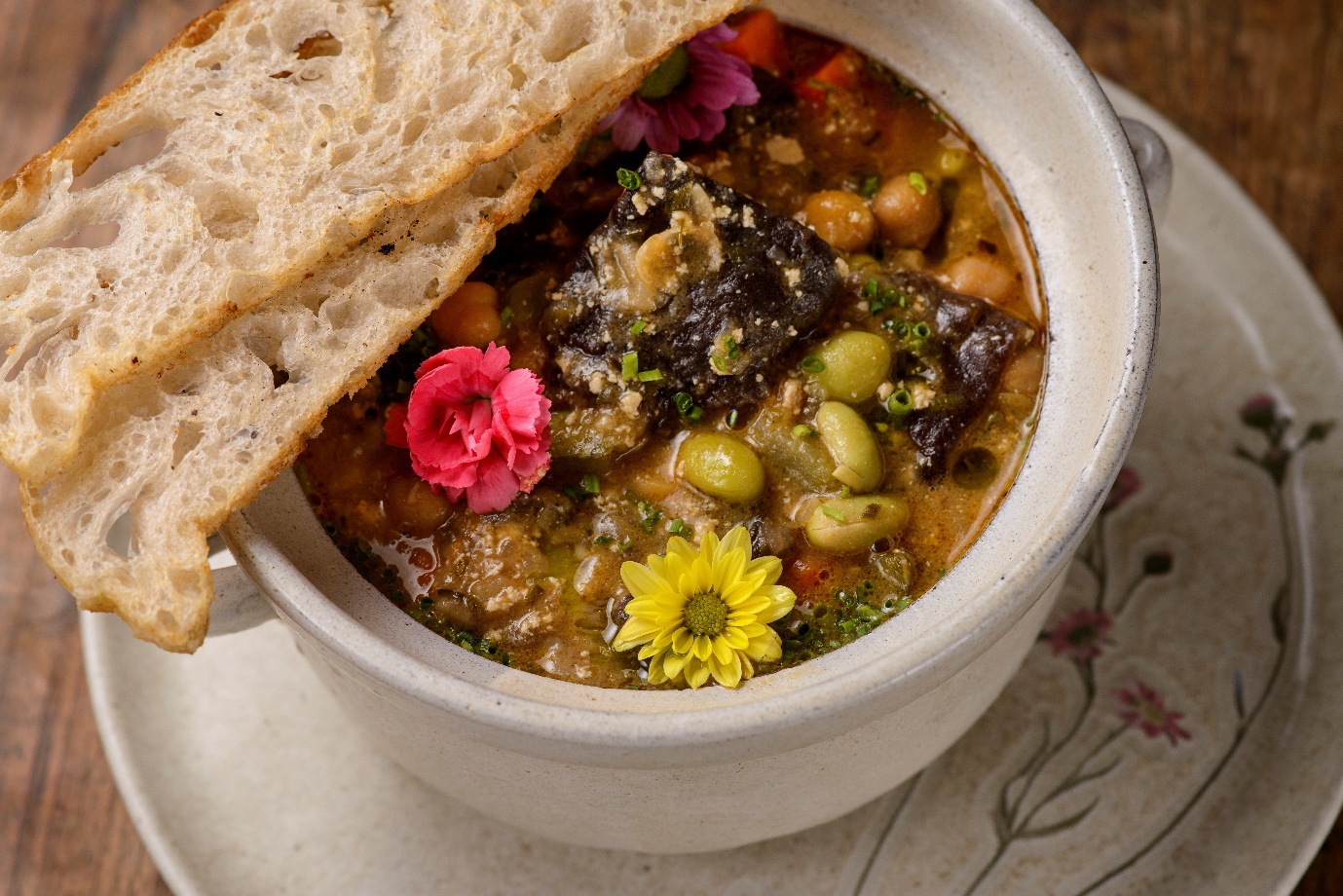 O destaque entre os pratos principais vai para o Ragôut de Grão-de-Bico com Tofu Defumado, Edamame, Cenoura, Abobrinha e Farofa Crocante de Ervas; uma proposta 100% vegetal que alia leveza e complexidade de sabores.