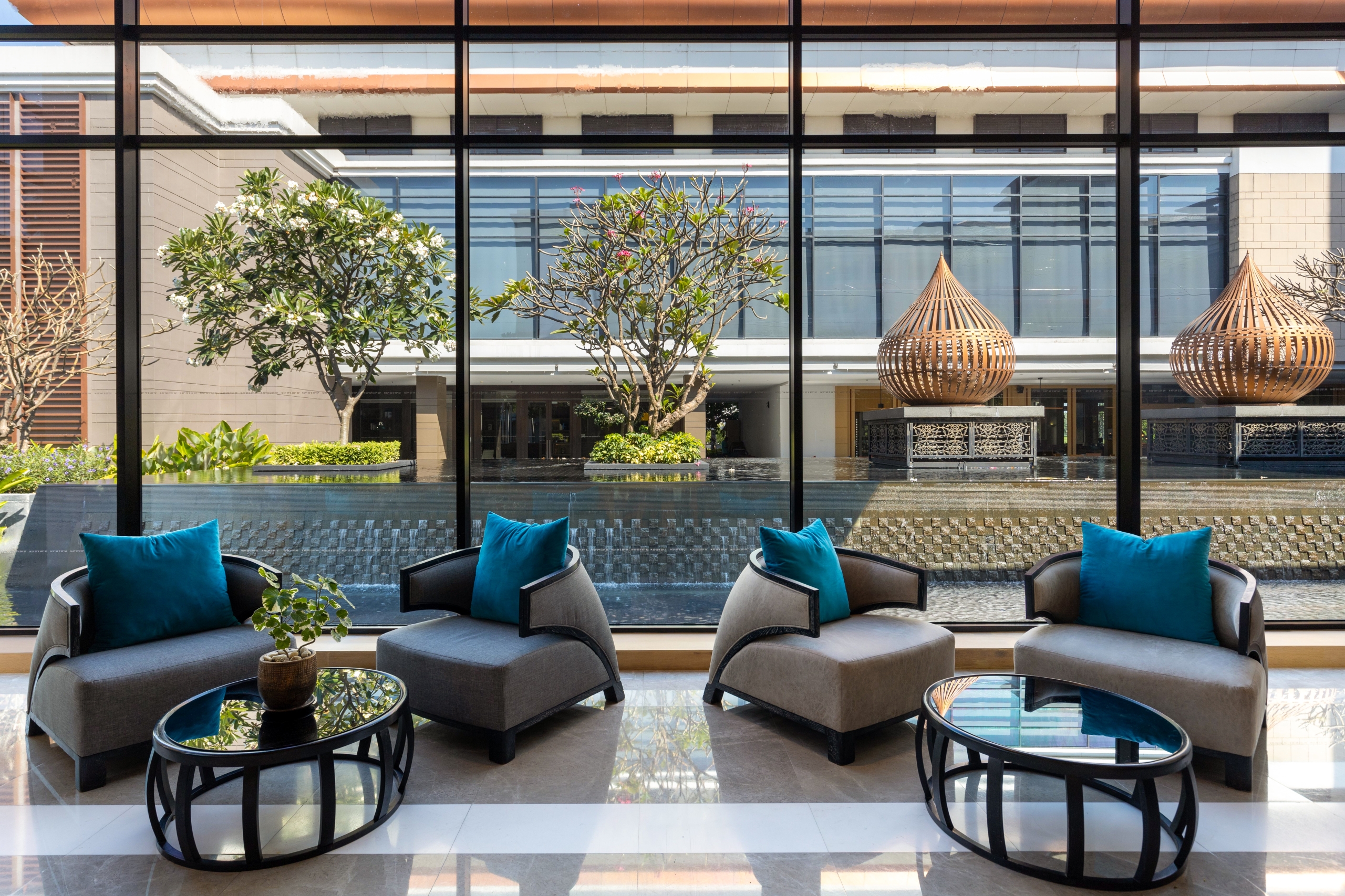 Na gastronomia, o resort evita a armadilha do excesso de conceitos. O restaurante italiano Tetto trabalha receitas clássicas com leitura contemporânea, sem firulas ou discursos grandiosos. Já o Kitchen Craft, de funcionamento contínuo, aposta em cozinhas abertas e interação direta com os chefs, permitindo ajustes de pratos em tempo real – uma solução prática para um público heterogêneo, que pode estar lidando com fuso horário, reuniões ou agendas imprevisíveis. O lobby, por sua vez, funciona como zona neutra: nem formal demais, nem casual em excesso, pensado para encontros rápidos ou pausas entre compromissos.