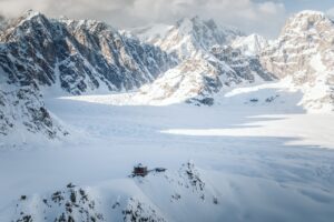O chalé isolado no pico da mais alta montanha do Alasca